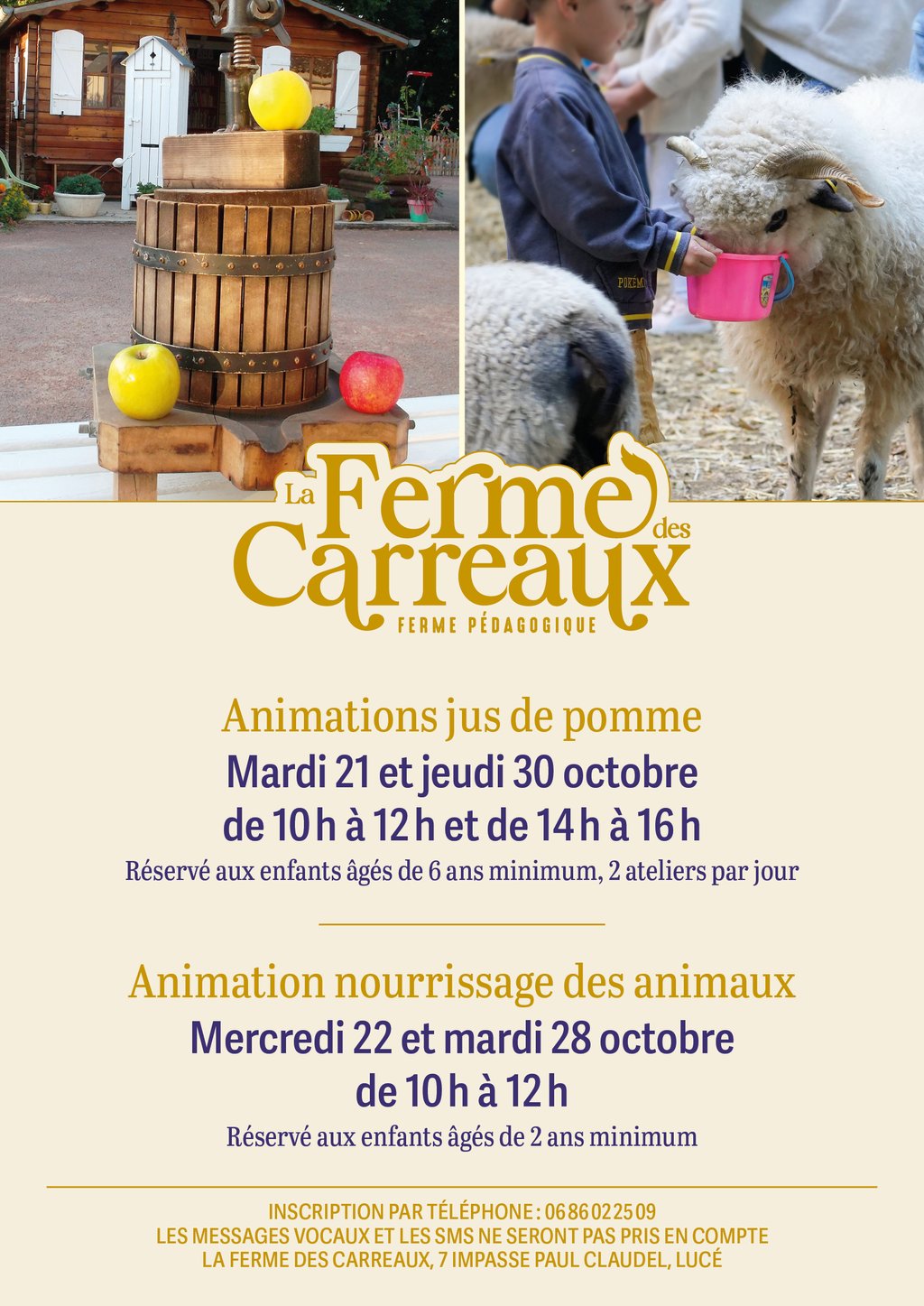 📞 Inscription obligatoire au 06 86 02 25 09 (les messages vocaux et SMS ne seront pas pris en compte)